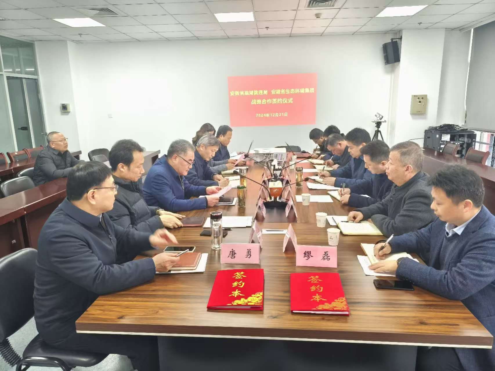 集团公司党委委员、副总经理缪磊,省巢湖管理局党委委员、副局长唐勇代表双方签订战略合作协议,环境科技集团、生态修复公司以及双方有关部门负责同志参加签约仪式。