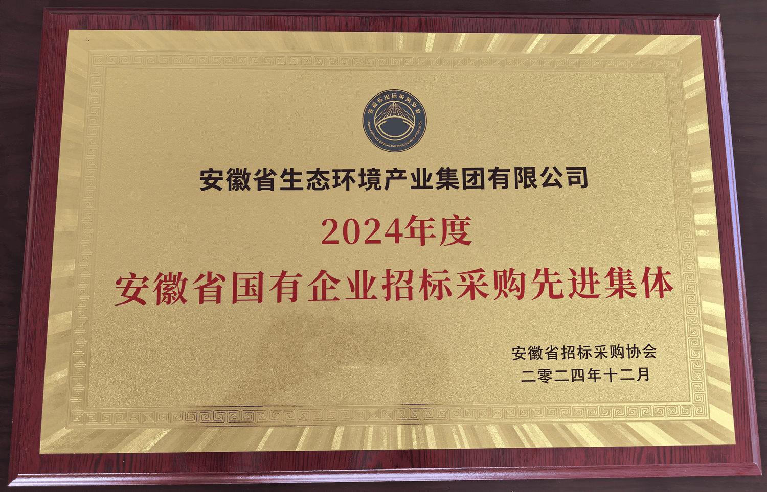 安徽省生态环境产业集团荣获“2024年度安徽省国有企业招标采购先进集体”称号