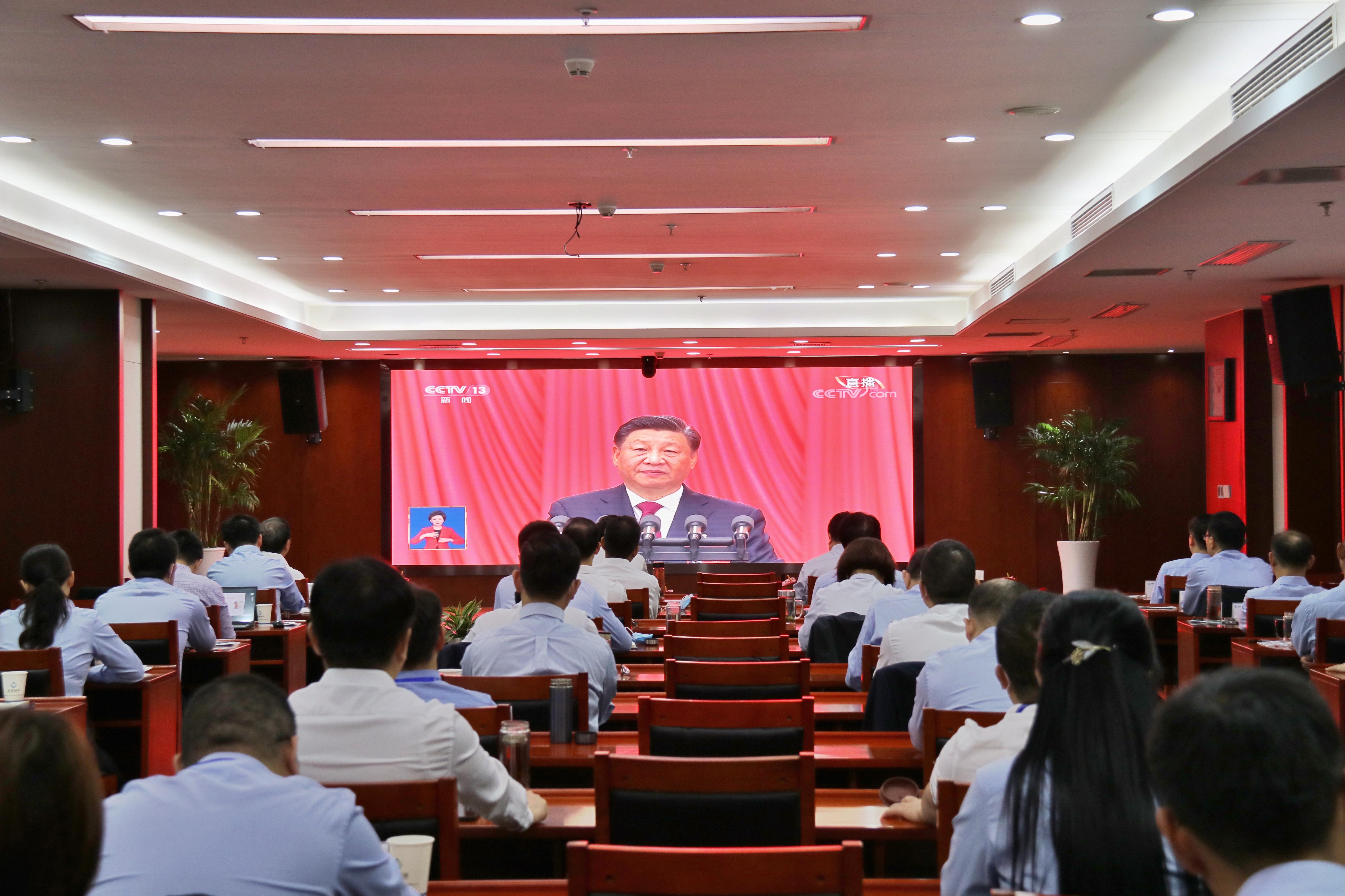 集团公司党政领导班子、中层以上干部职工及本部全体党员集中收看党的二十大开幕会