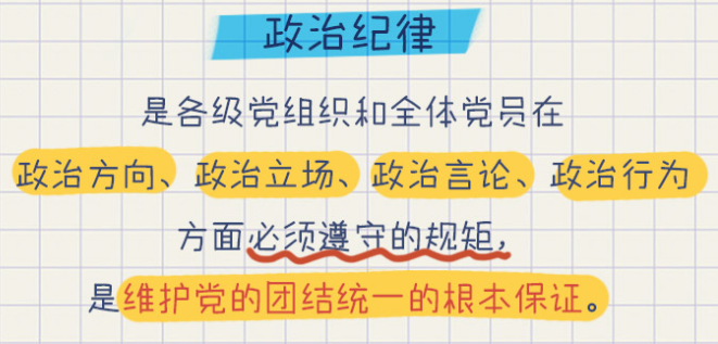 习近平总书记指出,党的纪律是刚性约束,政治纪律更是全党在政治方向、政治立场、政治言论、政治行动方面必须遵守的刚性约束。近年来,个别党员干部甚至高级领导干部不信马列信鬼神、不信组织信“能人”,严重损害了党的形象,追根溯源,根本上是政治信仰出了问题,因此进一步严明政治纪律和政治规矩成为必然要求。