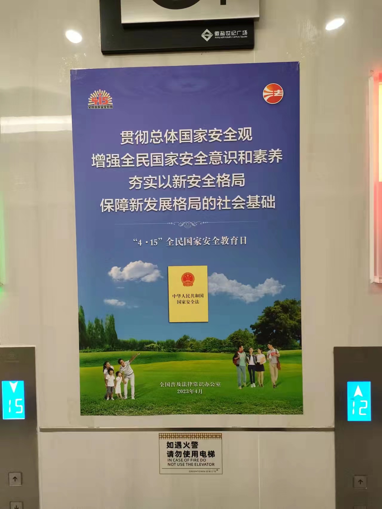 环境公司、发展公司、地产集团在微信公众号、官网政策法规平台上传国家安全相关法律法规,在办公场所张贴宣传海报。