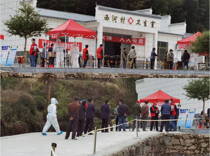 3月30日下午2点30分,随着演练领导小组的演练命令下达,演练各小组严格按照演练方案要求有序开展各自岗位工作。从村组动员到核酸人员登记,从体温检测到核酸采样,从交通保障到医疗救护,从标本运送到消毒消杀,各项工作有条不紊地推进。经过一个半小时的演练,圆满完成了西河村联防队、生态护林员、茶厂生产人员近百人的核酸检测任务。